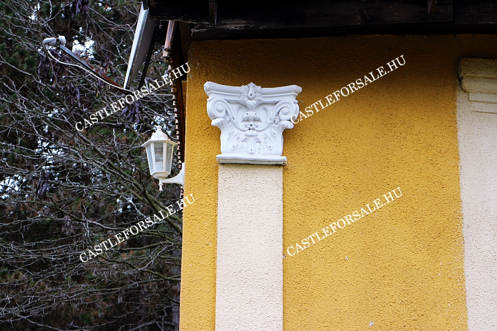 A ház előtt egy oszlopos külső tornác található, előtte egy kisebb portikusszal.